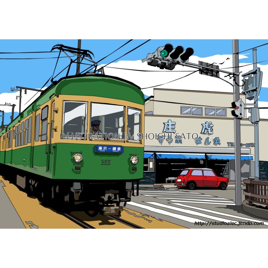 路面電車 昔も今もこの街に 湘南イラスト版画作品 Shs Studio Alec 通販 Yahoo ショッピング
